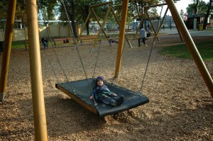 Csak miután végigcsúsztak mindegyik csúszdán többször, veszik észre, hogy a parkban más érdekességek is vannak. De még mennyi! Miközben a nagyobb gyerekek a „Felhőkben” csúszkálnak, a kisebbeket lekötheti a Picurvár (kivéve az enyémet, aki mindig a fiúk után szeretett volna menni). Közösen Ballagtunk át a Zengőerdőbe, itt szabadtéri hangszereket próbálhatnak ki akár a legkisebbek is. A Homoktengerben a szokásos játszótéri homokozókhoz képest van néhány érdekes beépített játék, és elvileg homokozó eszközöket a Parkból is lehet kölcsönözni ingyenesen, mi ezzel a lehetőséggel nem éltünk. Kismotort viszont hoztunk el legkisebbünknek a bejárattól, utóbb derült ki, hogy csak személyi igazolványért cserébe kölcsönözhettük volna ki, de nem volt abból sem nagy gond, hogy ezt a lépést kihagytuk. A Hintaréten mindféle hinta van, kivéve a megszokott, egyszerű típust. Némelyik annyira masszív, hogy több gyerek vagy akár egy felnőtt is kipróbálhatja – záróra előtt néhány perccel bevallom, meg is tettem.