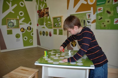 Végigsétáltunk a nagy bevezető sétányon, ahol kétoldalról a környék geológiai és növénytani jellegzetességeit sorakoztatták fel. A domb tetején ivóvíz, sok-sok pad, és egy szép, felújított Tájház várja a betérőket, kulturált mosdóval. Az aznap még festékszagú, frissen átadott Tájmúzeum Természeti és Halászati interaktív kiállítása kisebb gyermekek számára is tartogat meglepetéseket. (Bár az enyémek elsősorban a kitömött vaddisznó orrát szerették volna fogdosni.)