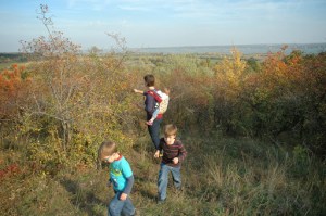 A gyerekek szertelenül rohangásztak, és az elmaradhatatlan termésgyűjtő zacskót próbálták minél jobban megtölteni. Mi anyukák, szintén gyűjtögetésbe kezdtünk, mert a rengeteg csipkebogyó bokor mellett nem lehetett szó nélkül elmenni. Ezúttal tettünk egy mappát is a hátizsákba, amibe aztán az összegyűjtött levelek kerültek.