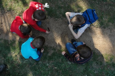 Mi azért kezdtünk itt, mert világos volt számunkra, hogy órákkal később visszafelé egyetlen gyereket sem tudunk majd rávenni a hatból, hogy jöjjenek oda fel velünk. Így is nehéz volt elmagyarázni az ő szintjükön, hogy miért van itt ez a különös építmény (nem is érdekelte őket, lódarazsat, katicát nézegettek).