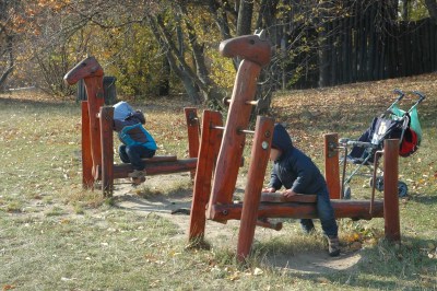 A játszótéren sok hasonló gondolkodású család kisgyerekei másztak a játékokon. A fa játékok nem azok a városi csilli-villi EU-s játszóterek, sokkal inkább bízzák a gyerekek fantáziájára a dolgokat. A mieink pl. az ott töltött kb. 40-50 perc alatt voltak masiniszták, kalauzok, utasok, hajóskapitányok, viharban cikázó hajón matrózok.