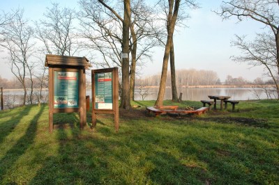 | A tanösvény tábláiról sok érdekességet megtudhatunk a tóról |