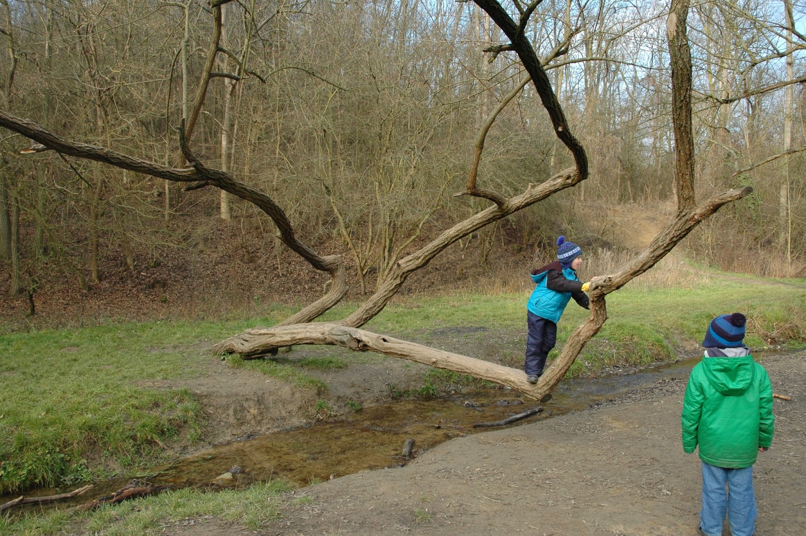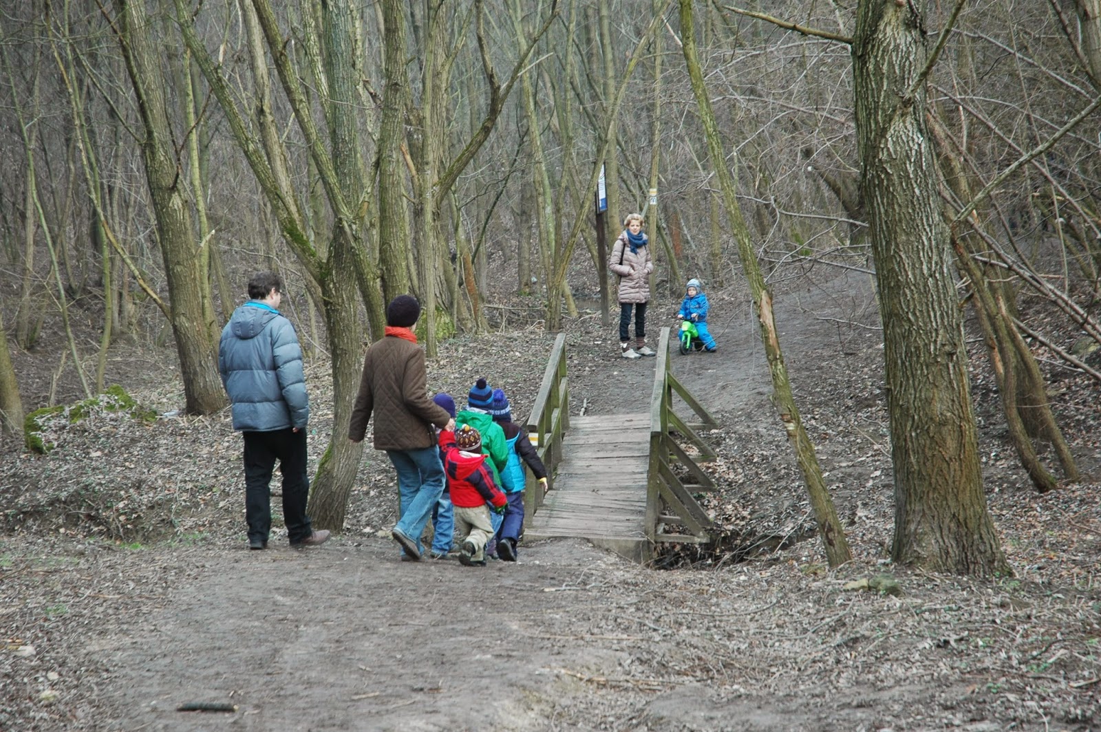 Lanyha, meleg januári reggelen határoztuk el, hogy kirándulunk egyet, ha már úgyis ilyen tavaszias az idő. (Elméletem szerint meglesz ennek a böjtje: márciusban, árpilisban majd nyakunkba kapjuk az igazi zord telet… úgyhogy január vagy sem, menni kell, ha jó az idő!) Az utolsó pillanatban becsatlakoztak unokatesóék is, így két autóval támadtuk meg a solymári Shell kút melletti pici parkolót. Kis túlzással majdnem az összes helyet el is foglaltuk… na jó, van ott kb. 10 autónak hely. Kiránduló szezonban gondolom a környező kis utcákban lehet még parkolni. A zebrán átsétálva gyakorlatilag máris az erdőben vagyunk, ahol csendesen csörgedezik a patak! Mindez Budapest hivatalos közigazgatási határától néhány száz méterre! Mondtam már, hogy szeretem ezt a várost, és a környékét?