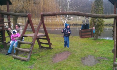 Az a rengeteg ember, akik láthatatlanok voltak az Arborétumban, testet öltöttek, és hatalmas tömeget alkottak, amikor kb. egyszerre szerettek volna megebédelni a Puskás Hotel éttermében. Mi is közéjük tartoztunk, és jelentem, nem jártunk sikerrel. Kicsit még játszottunk a hotel hangulatos játszóterén, de mikor láttuk, hogy esélytelen, hogy itt kb. két órán belül a gyerekek éhes szája be legyen tömve, továbbindultunk.