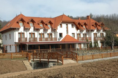 | A Sólyomvár Panzió az erdő felől fotózva |