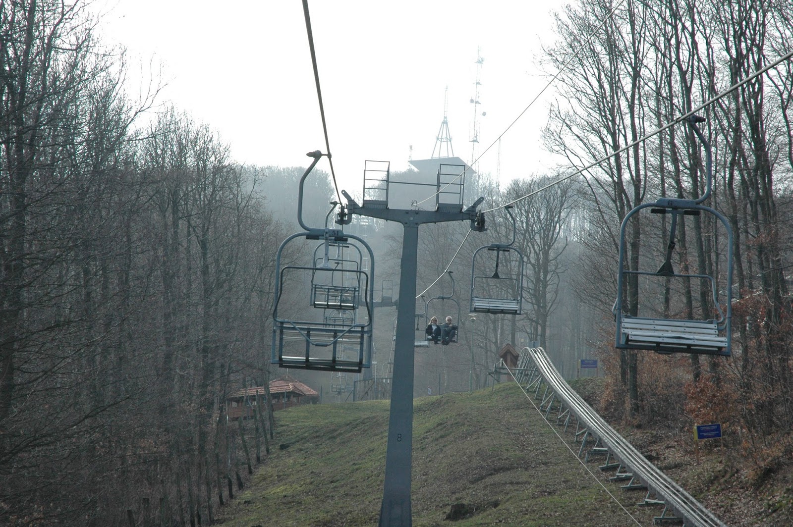 A libegőzés tényleg nagy élmény volt, s hosszan tartott. A kilátóból nem sokat láttunk a felhős idő miatt, ettől függetlenül hiba lett volna kihagyni a megmászását. Libegővel vissza a lenti állomásra, majd fel a bobra, hogy azzal is csússzunk egyet. A bobpálya több mint 2 km hosszú, telerakták bedőlős, izgalmas kanyarokkal, nagy lejtőkkel. Visegrád, Balatonfűzfő és Balatonboglár után mindenképpen azt mondom, hogy messze ez a legjobb pálya!