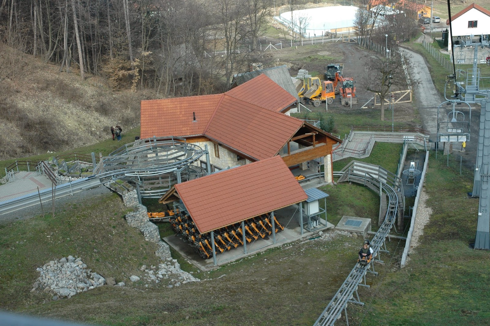 | A bobpálya indító és érkező állomása a libegőről fotózva. |