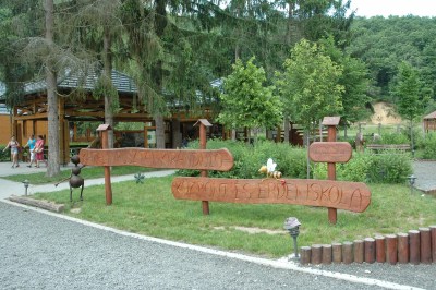 A Látogatóközpont: fedett szaletli, kis túrabolt, a kerítésen belül erdei játszótér, fogadóépület, erdei iskola. |