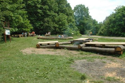 | Óriások Pihenője: tűzrakók, “asztalok”, “padok”. |