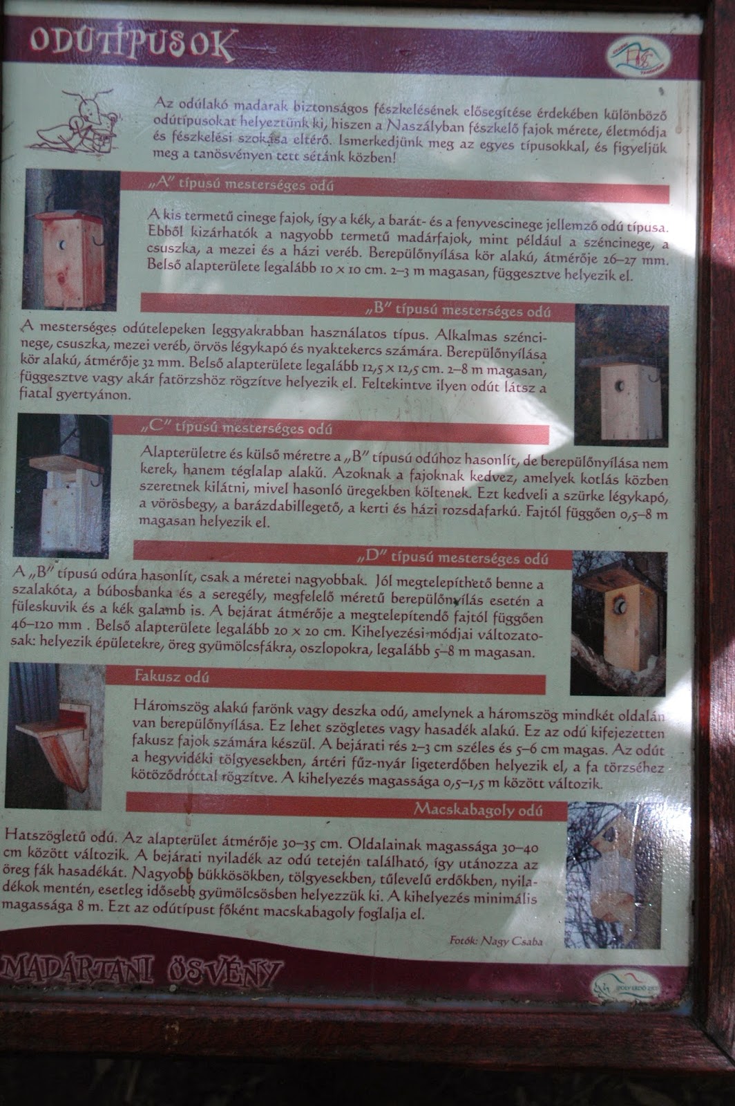 | A Madártani Tanösvény egy táblája. |