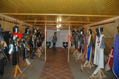 A tetőtérben íjászati és vért kiállítás látható.