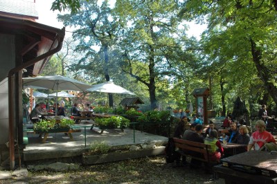 Fent a központi parkolóban hatalmas tömeg, és zsúfoltság fogadott minket. Túl szép volt az idő, túlságosan vasárnap volt, és túl sokan gondolták, hogy eljönnek ide. Szerencsére azonban a tömeg nagy része inkább autós túrában gondolkodott. Feljöttek, kinéztek a két kilátóponton, esetleg ettek egyet valamelyik büfében vagy étteremben, majd elmentek. Éppen ezért a két kilátónál (az Eötvös turistaház mögött és a Rezső-kilátónál) borzasztó zsúfoltság volt, a büféknél szinte lehetetlen lett volna szabad asztalt kapni.