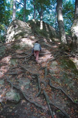 Ám amint bevetettük magunkat az erdőbe, hogy elinduljunk a Zsivány-sziklák felé, csökkent az embertömeg, s egyre inkább kitűnt, kik a valódi kirándulók. A Kék-túra útvonalán már tényleg alig találkoztunk egy-két családdal, és végre beburkolózhattunk az erdő csöndjével.