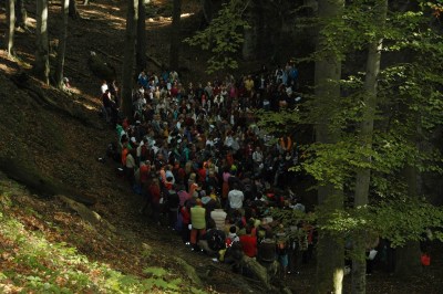 | Ezoterikus összejövetel a Zsivány-sziklák mögött. |