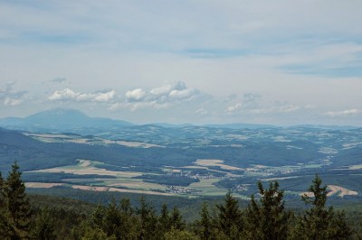 Erre éppen Burgenland dimbes-dombos tája látható, de másik irányba ellátni a Gerecséig is! Láttuk a Balatont, a Somló-hegyet… |