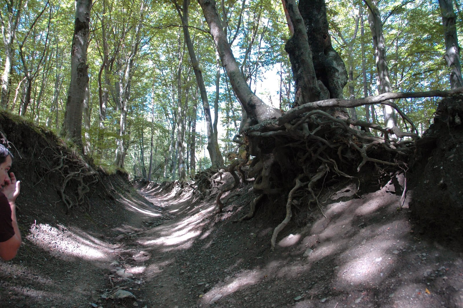 Lefelé a piros jelzésen szerettünk volna haladni. Azért írom, hogy szerettünk volna, mert néhol borzasztó állapotok uralkodtak az úton: bedőlt fák, rosszul értelmezhető, vagy nem felfestett jelek. Egyszer emiatt el is tévedtünk, ami fáradtan, éhesen nagyon bosszantó!