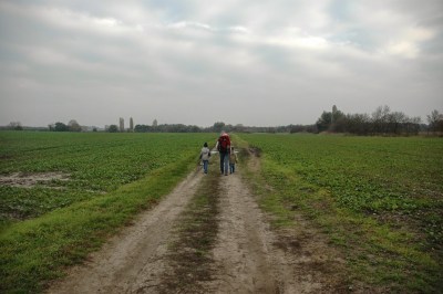 Cukorrépa-ültetvények között haladunk vissza az autóhoz.