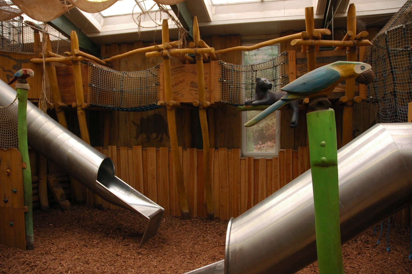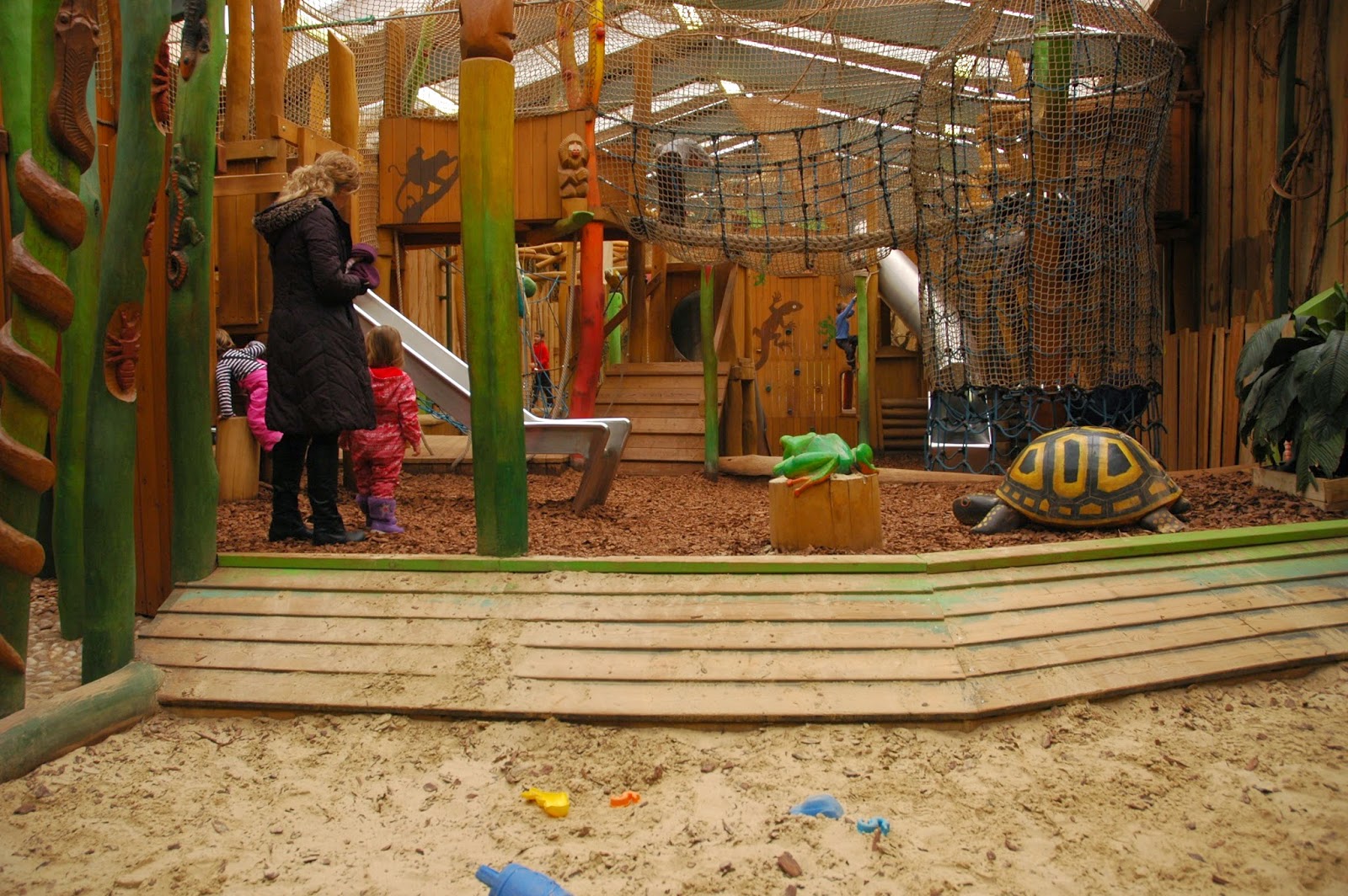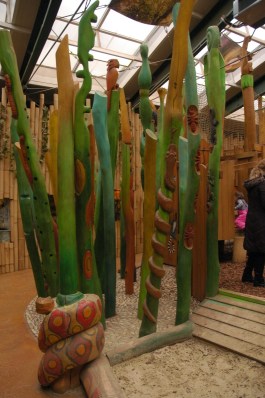 Állatkerti sétánk végén betartottuk ígéretünket, és jó 40 percet engedélyeztünk a játszóházban a gyerekeknek. Még a farkaséhség sem tudta rávenni őket, hogy menjünk végre, annyira jól érezték magukat! (Az állatkertben van étterem, de télen nem, vagy nagyon minimálban üzemel. Ott jártunkkor sajnos nem volt befűtve, s még ha ki is sütött volna nekünk valamit a szakács, nem tudtuk volna hol, hogyan megenni… Így sajnos ebédünket az állatkerten kívül kellett megoldanunk.) A Kölyökdzsungel viszont nagyon szuper! Nyáron biztos nagy lehet a tömeg… nekünk ezzel most nem kellett megküzdenünk. Nekem különösen tetszett, hogy néhány állat egy térben él a gyerekek játszóházával. Ide került néhány “nemszeretem állat” – kígyók, sáskák, stb, de a lajhár is egész nap gyereknyüzsgést figyelhet.