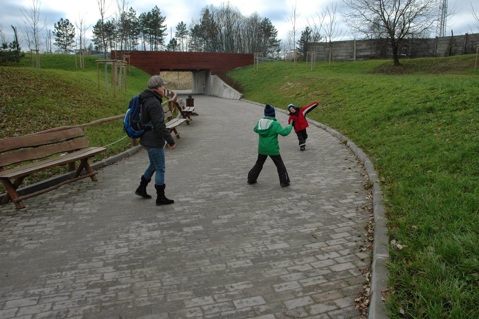 A Gulyadombi terület új bejáratot is kapott, a Körgyűrűről közvetlenül lekanyarodva is elérhetjük az állatkertet, ahol nagy parkoló várja az innen érkezőket. Mi ezen a nyugodt, decemberi péntek délelőttön a régi, Viadukthoz közeli bejárat felől léptünk be a parkba.
