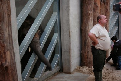 Nem csak a csimpánzok megajándékozását nézhettük végig, de az új elefántházban mi magunk is kirakhattuk a három indiai elefántnak szánt nyalánkságokat!