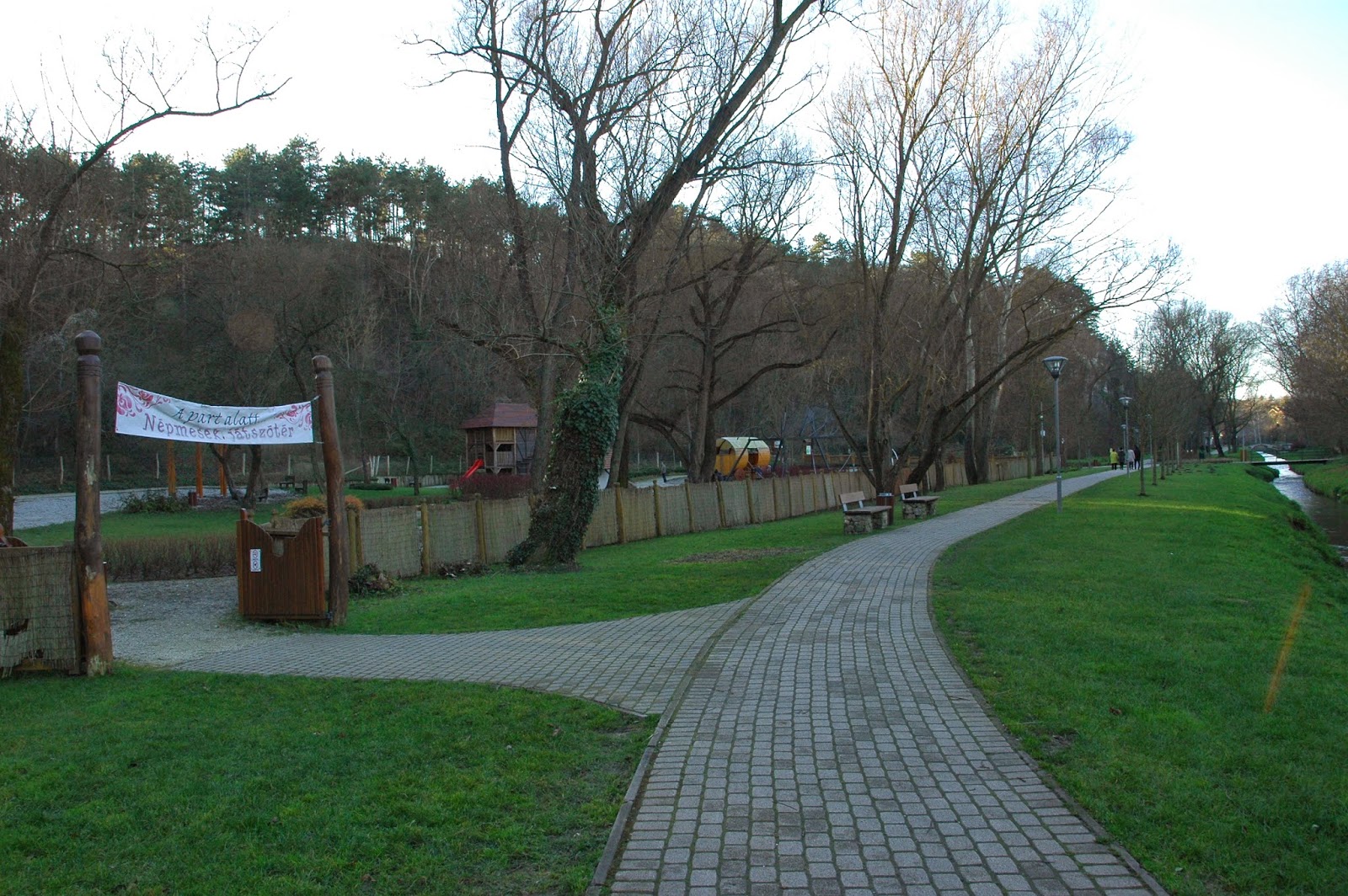 Szívesen megszálltunk volna a Betekints Hotelben, de árait nem a mi pénztárcánkhoz szabták. Viszont oldalán olvastam, hogy mindössze néhány lépésnyire vannak a pataktól és a híres játszótértől. Nosza, rajta, nézzük csak meg, mi lehet ez, amire egy hotel honlapja is hivatkozik!?
