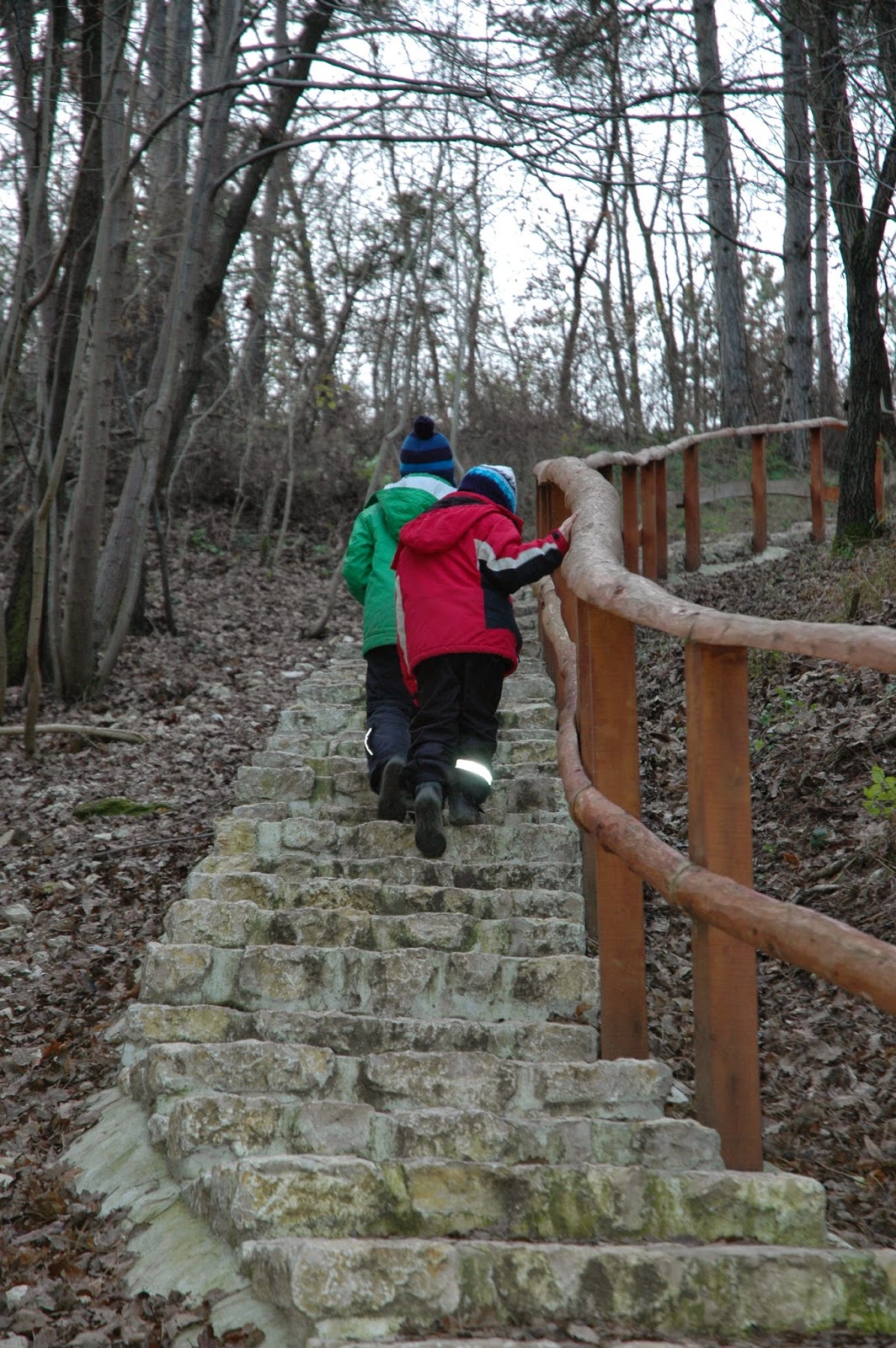 | A Gulya-dombi Parkerdőbe egy hosszú lépcsősoron lehet felmenni a völgyből… |