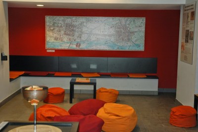 | Igényes grafikájú térkép, melyen a polgárvárost és a katonavárost, valamint a Hajógyári-szigeten található elöljárói palotát is megtekinthetjük. |