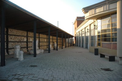 Pályázati pénzből nem csak kulturált autó- és biciklis parkolót alakítottak ki az épület előtt, hanem most már a múzeum megnagyobbított területére belépve ezt a kőtárat látjuk: