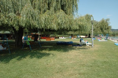 De nem akarok csak kellemetlenségről írni, hiszen azért ez a Tomaj kemping egy tuti kis hely! Főleg ami a strandját illeti! Nagyon hangulatos, árnyékos partszakasza van, két lépcsővel a vízbe. Mivel itt jóval kisebb a népűrűség, mint más helyeken (a strandokról nem is beszélve), a legmelegebb pillanatokban sem éreztem fullasztónak a vízben tartózkodó embermennyiséget. Kedves kis játszótér, homokozó várja a gyerekeket, az óriás sakk kulcsát a recepción lehet elkérni, ingyenes. Ugyanígy lehet “bérelni” ingyenesen ping-pong labdát és ütőket, az asztalok biztosítottak.