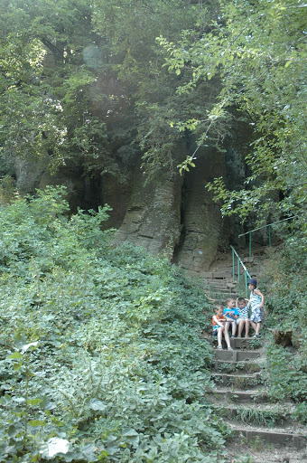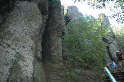 Teljesen követhetetlen volt, hogy melyik fára mi van felfestve. Jött szembe egy csapat, annak a vezetőjétől kaptunk egy egyszerű, szóbeli tájékoztatást, ami alapján már gond nélkül megtaláltuk a Sárkánybarlangot, más néven Jégvermet, majd a Kulcsosházat, és az innen a bazaltorgonákhoz felvezető utat.