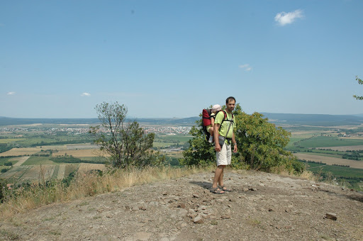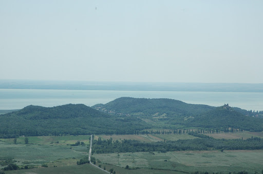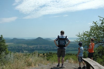 Az esőbeálló árnyékában pihegtünk, szusszantunk egyet, majd felmentünk a salakkúpra, ami a hegy legmagasabb pontja, pazar kilátással a Balatonra, a Badacsonyra, Szigligetre.