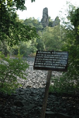 Újult erővel folytattuk a sétát az egyre melegedő időben. A térképünkön – pedig nem volt régi példány – valahogy másként szerepeltek az utak, de a Szent György-hegyi tapasztalatok után inkább mentünk arra, amerre sejtettük a helyes irányt. Tervünk az volt, hogy a Ranolder-kereszt tövében ismét pihenünk egyet, majd nekiindulunk lefelé a Bujdosók lépcsőjének, hogy innen nézzük meg a híres bazaltorgonákat.
