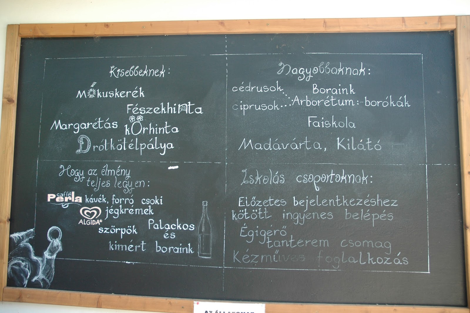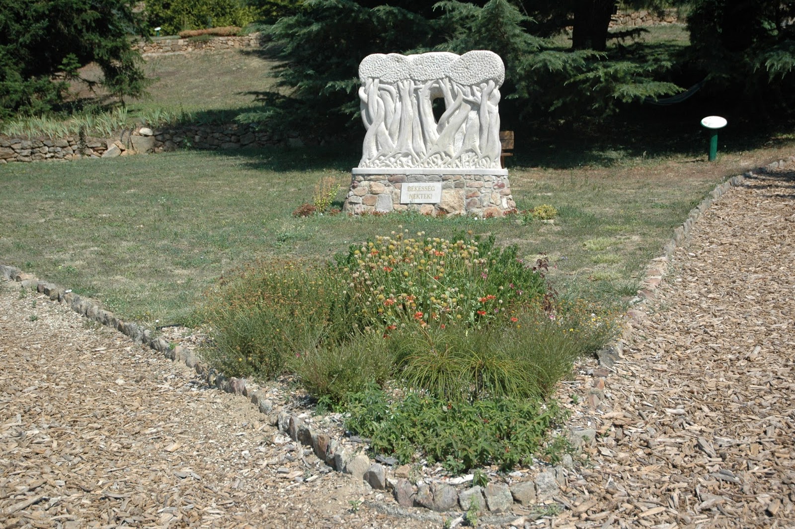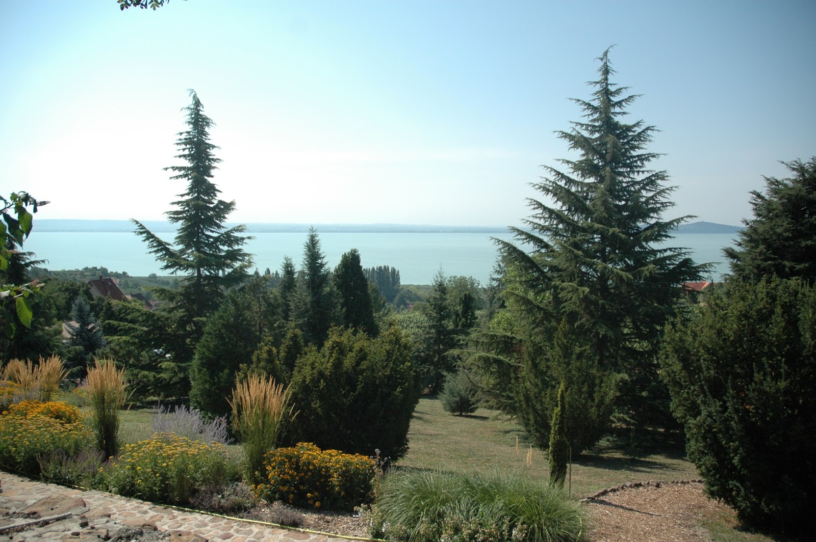Egyetlen körülmény miatt nem tudtuk 100 %-osan élvezni ittlétünket, ez pedig az időjárás volt. Akármilyen korán keltünk, akármilyen korán indultunk, a hőség már reggel tarolt. Mindent uralt a perzselő, elviselhetetlen napsütés és a kibírhatatlan, iszonyatos meleg. A déli fekvésű domboldalba már a reggeli nap belövellte sugarait, és annyira nehéznek tűnt megmászni a hegyet! Mert ezt az arborétumot egy nagy, néhol bizony meredek domboldalba képzelték el korábbi tulajdonosai, alapítói, a ma is élő és itt tevékenykedő Folly-lányok felmenői. Nagyon szívesen beszélgettem volna a jelenlegi tulajdonosokkal az itteni életről, a borászatról, a növényekről, a megnyert EU-pályázatról, de annyira, annyira meleg volt, hogy a gyerekek sem bírták, és a séta, játék végén hamar lerobogtunk a kemping strandjára.