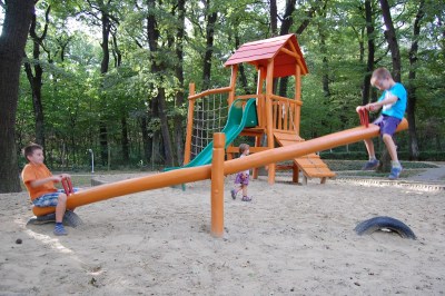 | A kilátó aljában játszótér várja a kicsiket, pihenőpadok a nagyobbakat. |