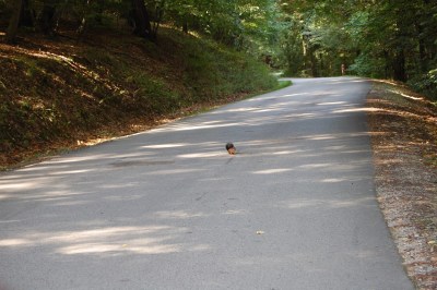 A fasori séta után úgy ítéltük meg, hogy a térdemmel a 3,5 km-es hegyi túra megkockáztatása helyett a 900 m-es gyaloglást választjuk a Károly kilátó felfedezéséhez, minimális szintkülönbséggel. Ennek okán autóba ültünk, és felhajtottunk a Lővér Kalandpark parkolójáig. Útközben ezzel a kisfickóval találkoztunk: