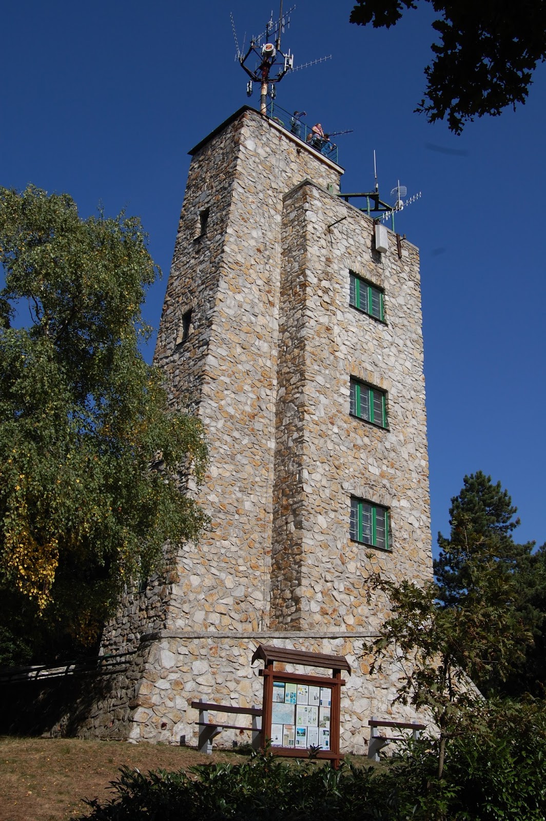 Az először fából, majd később, az 1930-as években kőből épült kilátó két szintjén, valamint egy másik épületben természetismereti kiállítás lett kialakítva.Sajnos ott jártunkkor ezek zárva voltak. Az élmény azonban így is gyönyörű! Nem csak az odavezető kellemes séta, az őszi erdei kincs- és termésgyűjtés, hanem a kilátás is leírhatatlan élmény.