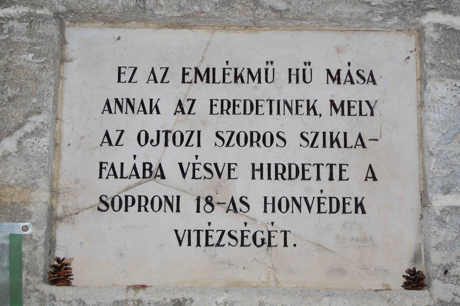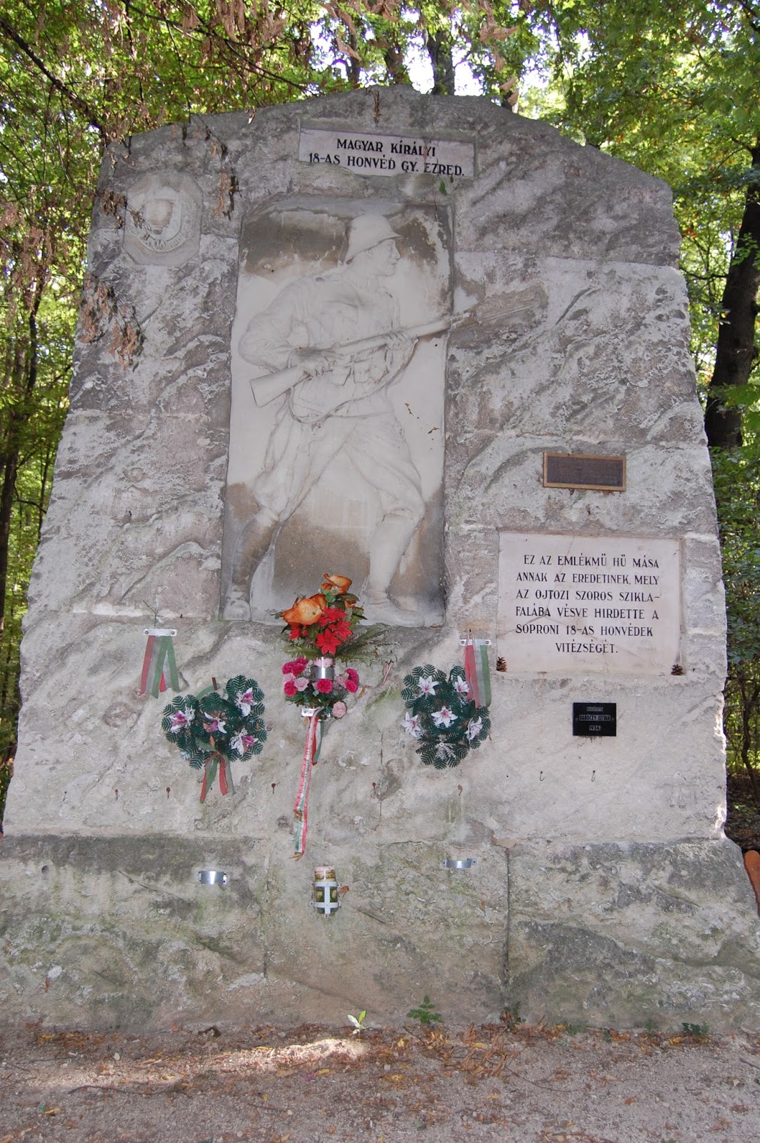 | Az Ojtozi Emlékmű hű másolata. Személyes érdekesség: én az eredeti helyszínen is jártam évekkel ezelőtt, Soprontól légvonalban 780 km-re. |