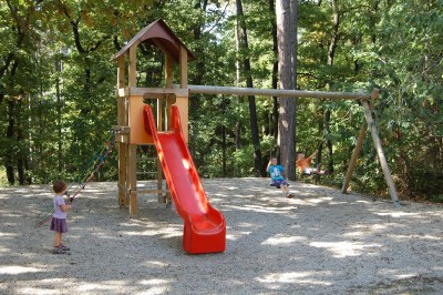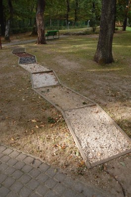 | Mezítlábas ösvény a játszótér mellett. |