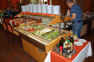 Büféasztalos reggeli és vacsora várja a félpanziós vendégeket, mi minden alkalommal bőségesen jóllaktunk, és hatalmas kínálatból válogathattunk. A gyerekek minden reggelinél és vacsoránál találtak a fogukra való finomságot. Etetőszékből nincsenek elhalmozva, de az is lehet, hogy csak nem volt kint az összes példány a vendégtérben. Műanyag tányérok, poharak a kisebb gyerkőcöknek ki vannak készítve.