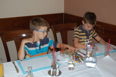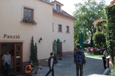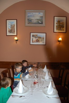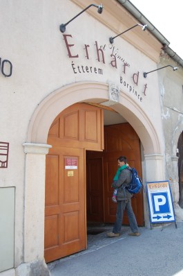 Ebédre az Erhardt Étterem és Panzió várt minket. Néhány lépésre a Várkerülettől, a Balfi út legelején található ez az ódon házba települt, modern konyhát vivő, családias vendéglátására oly büszke étterem. Lehetnek is büszkék rá! Nem csak a személyzet volt rendkívül kedves és türelmes a gyerekeinkkel (is), de olyan helyen foglalták nekünk az asztalt, ahol teljesen elkülönülve, a többi vendéget nem zavarva lehettünk és ehettünk magunkban. Mikor látták, hogy a gyerekek épp elunják a várakozást, megjelentek papírral, színes ceruzával, még alátétet is hozott a kedves pincérhölgy, hogy tudjanak az abroszon rajzolgatni, míg megérkezik a főfogás. Őszintén szólva én a tálalástól és az ízektől egyaránt elájultam, de nem volt ezzel másként a férjem sem.