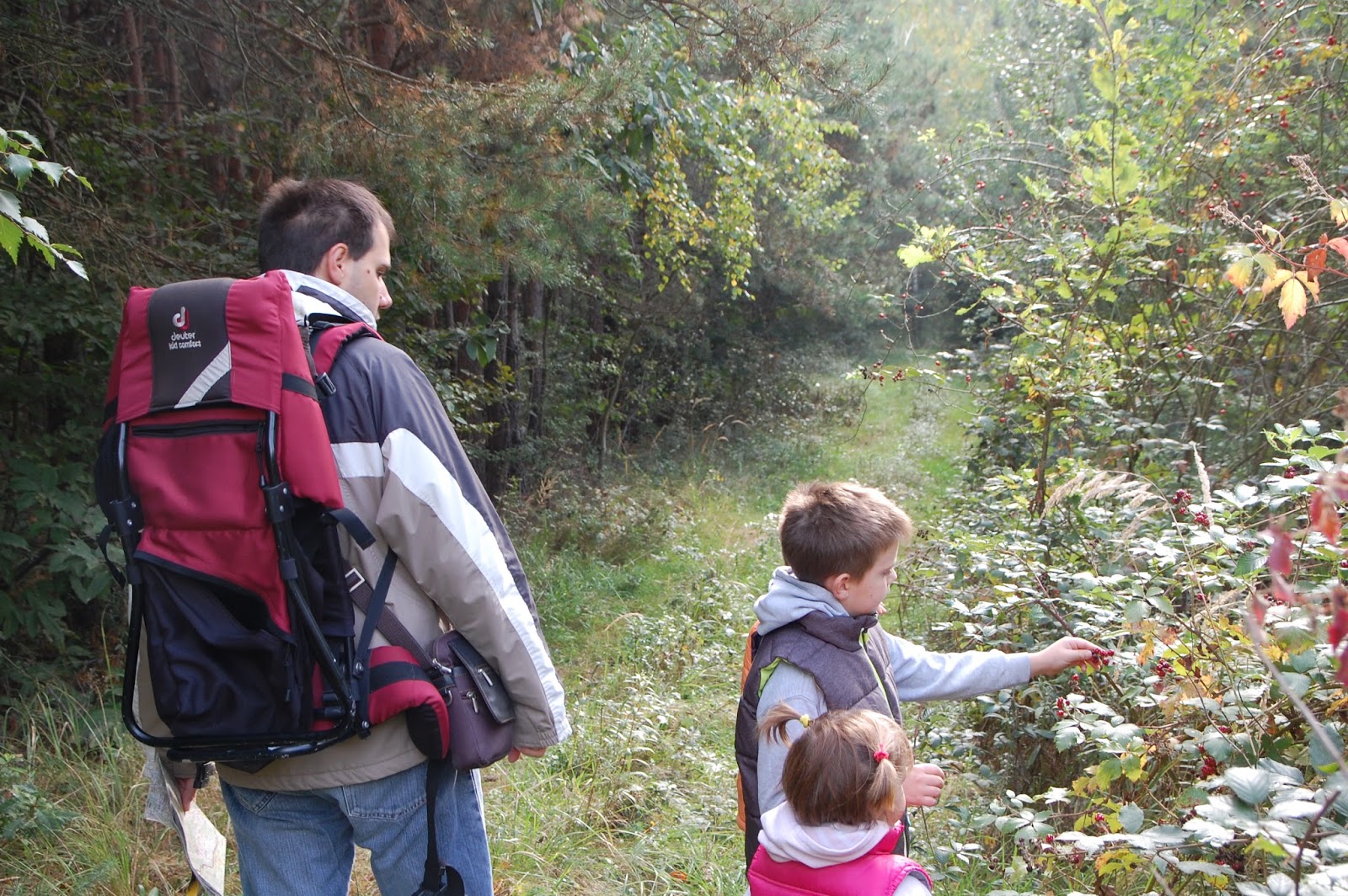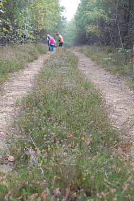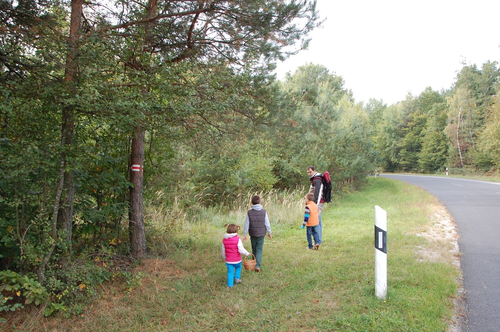 Miután jól kinézelődtük magunkat odafent, elindultunk, hogy felkeressük a határ vonalát. A piros jelzést kell követni. Néhány száz méterrel a kilátótól kereszteztük a határhoz vezető közutat, innen már tényleg a határzónában gyalogoltunk.
