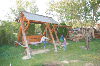 A gyerekek mindeközben a szaletli mellett található kis hintán lógtak, rohangáltak a kertben, illetve cicáztak ezekkel a kis frissen született gombócokkal: