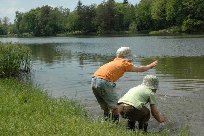 | Kihagyhatatlan játék minden vízparton. Ezúttal bele is álltak – gumicsizmában szabad. |