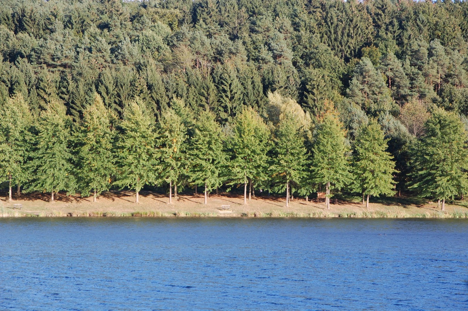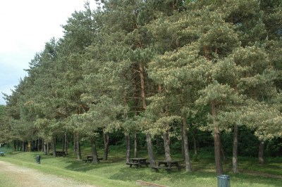 A másik oldal sötét, és teljesen másik képet mutat, mint a strand oldala. Fenyvessel telepített. |