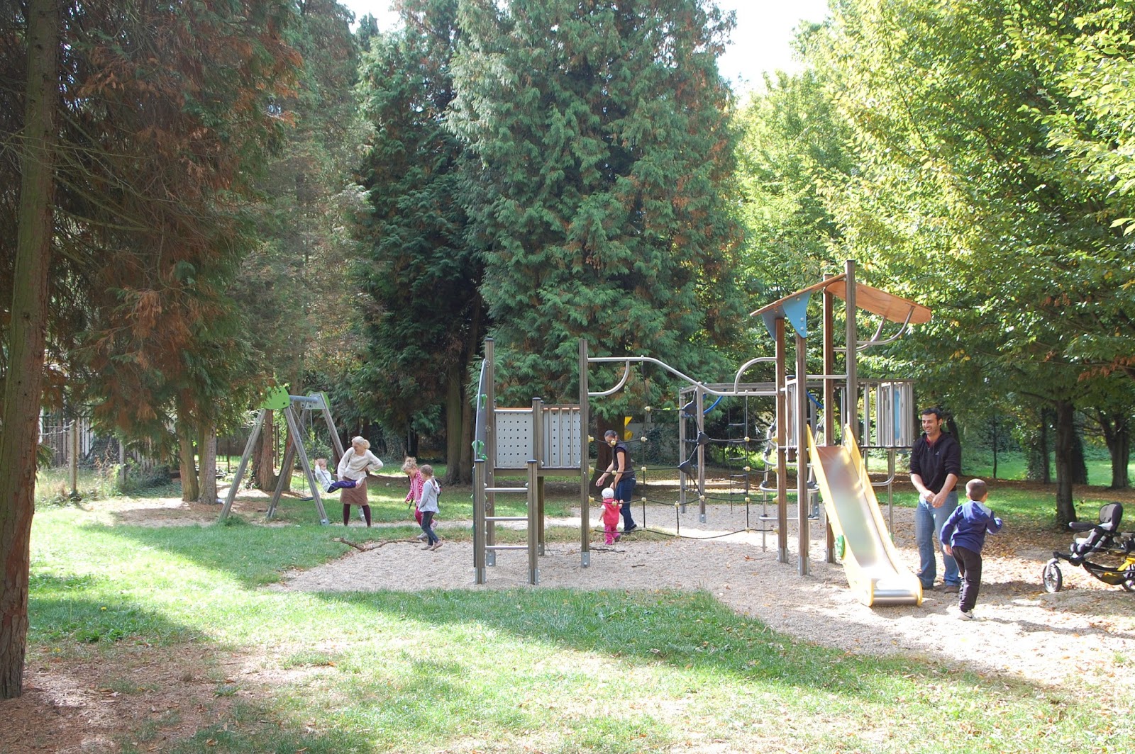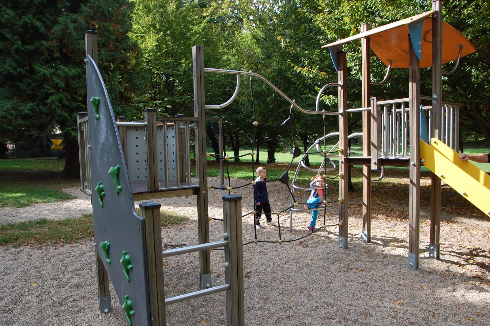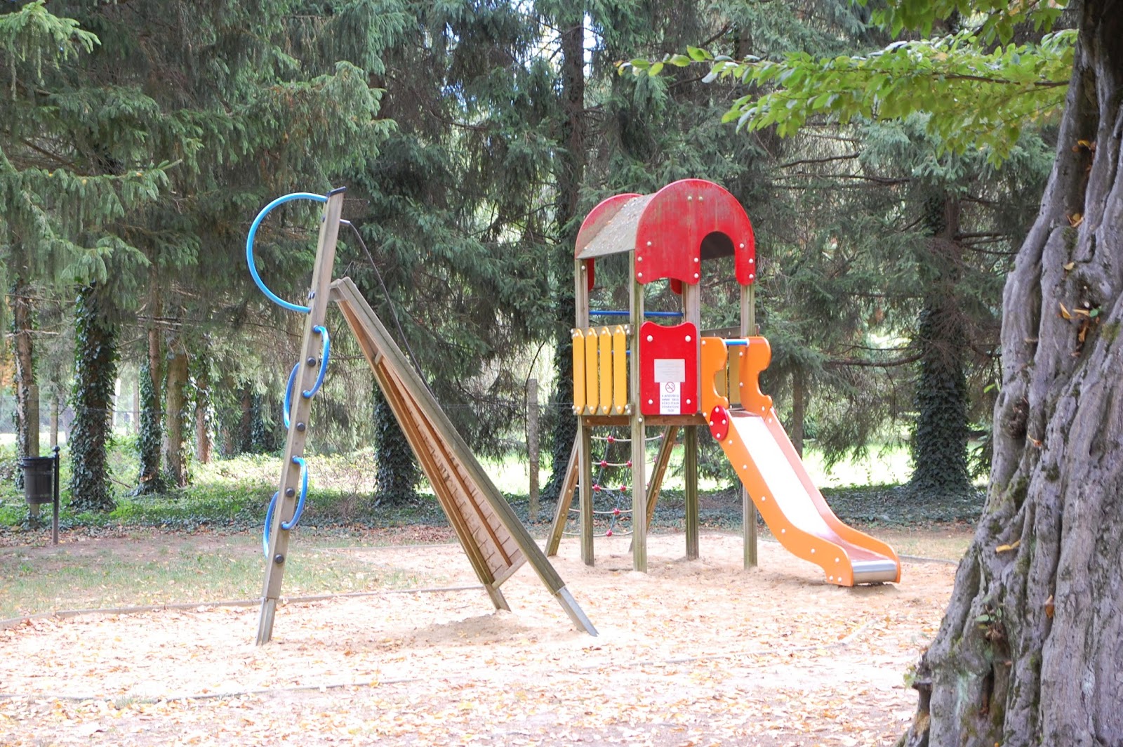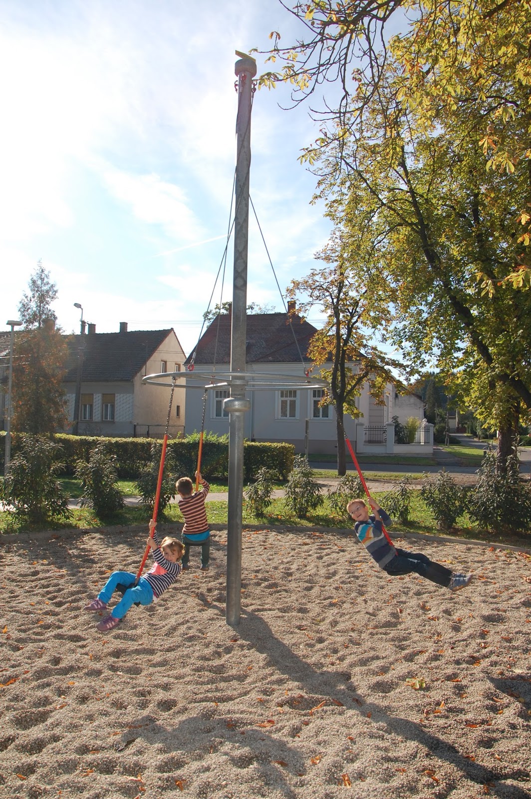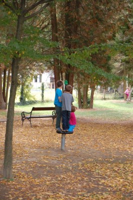 Mivel jóval korábban értünk a városba, mint a kezdődő szentmise, kihasználtuk az időt egy kis játszóterezésre. Szerencsére nem kellett törni a fejünket, hogy merre induljunk játszót keresni, szó szerint elhaladtunk ugyanis egy terecske mellett, ahol szenzációs játékok hívogatták a gyerekeket. Utólag megnéztem: Szabadság térnek hívják. Minket a kellemes őszi napsütésben nem zavart az árnyék hiánya, de nyáron ez a játszótér csak reggel és este lehet használható. Nagyszerű, gyönyörű kivitelezésű játékokon tombolhattak a gyerekek egészen a tovább indulásunkig.