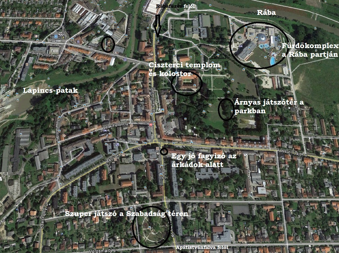 Készítettem egy kis Szentgotthárd térképet, a kifejezetten kisgyerekes szemmel fontos helyeket jelöltem be turista társainknak:
