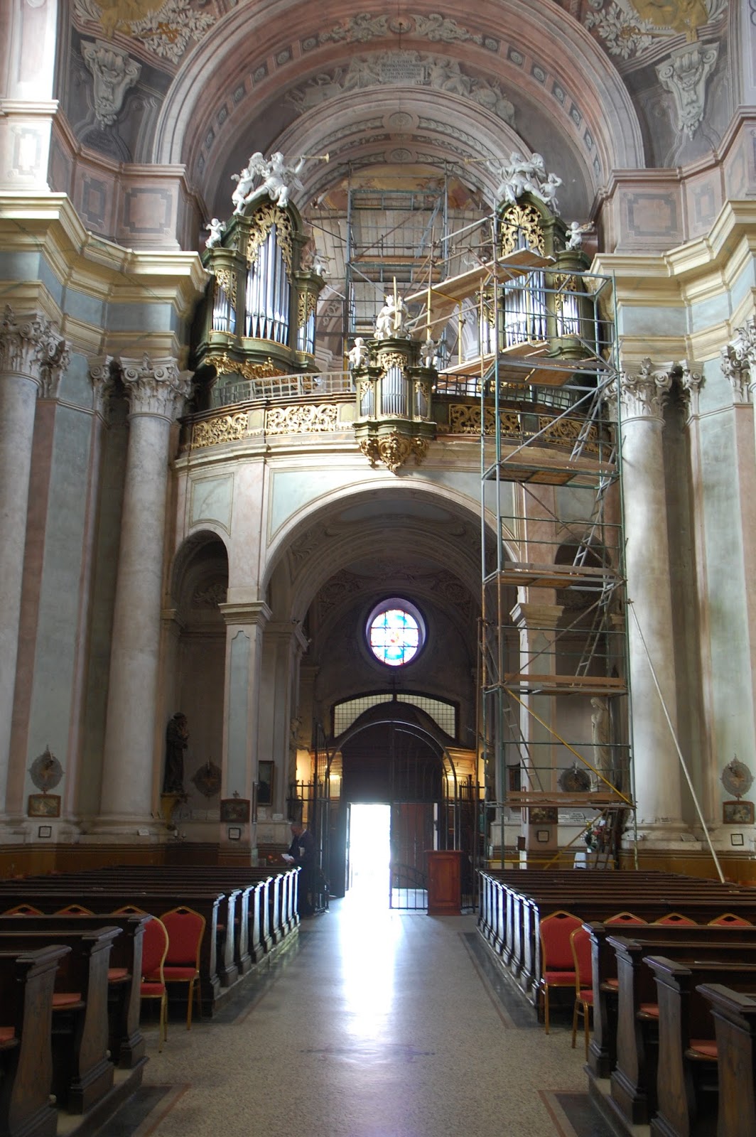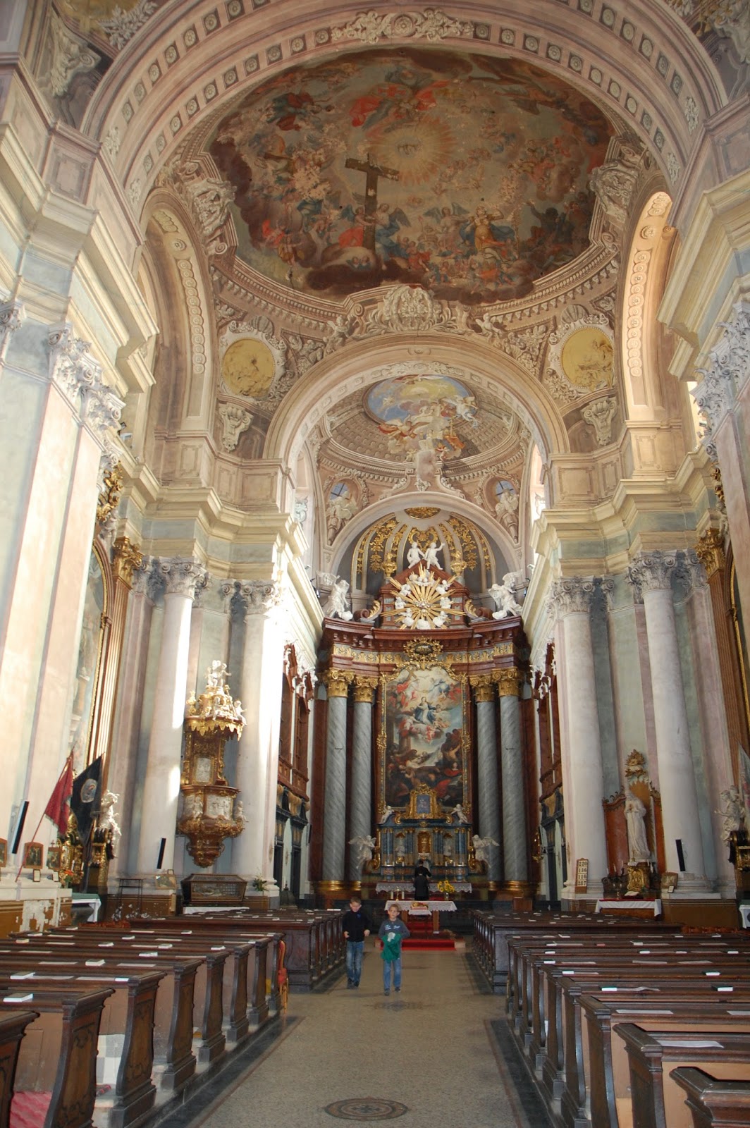 Innen mindössze néhány perces sétával elérhető a város egyik jelképévé is vált Ciszterci Apátsági templom. A szentmisén egy – bocsánat a kifejezésért – arcátlanul fiatal pap prédikált olyan szépen és találóan a családi egység fontosságáról, hogy bizony férjemmel kifele menet megállapítottuk: ilyen fiatal, lendületes és okos atyákra lenne nagy szüksége Egyházunknak. A templomban és környékén fotóztam néhányat, lásd alább, nem illesztem viszont ide a sok fotó között Szent Vince ereklyéit, melyek ki vannak állítva egy üveg mögé a templom bal első részében. Ugyanis a teljes test látható – ruhában – de hát akkor is egy csontváz, még ha szent is… Na.