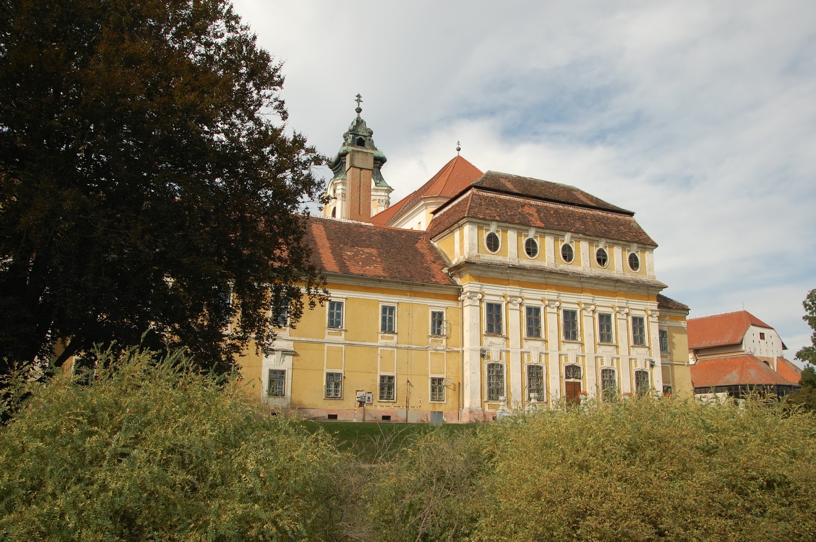 | Gyönyörű park a kolostorépület mögött. |