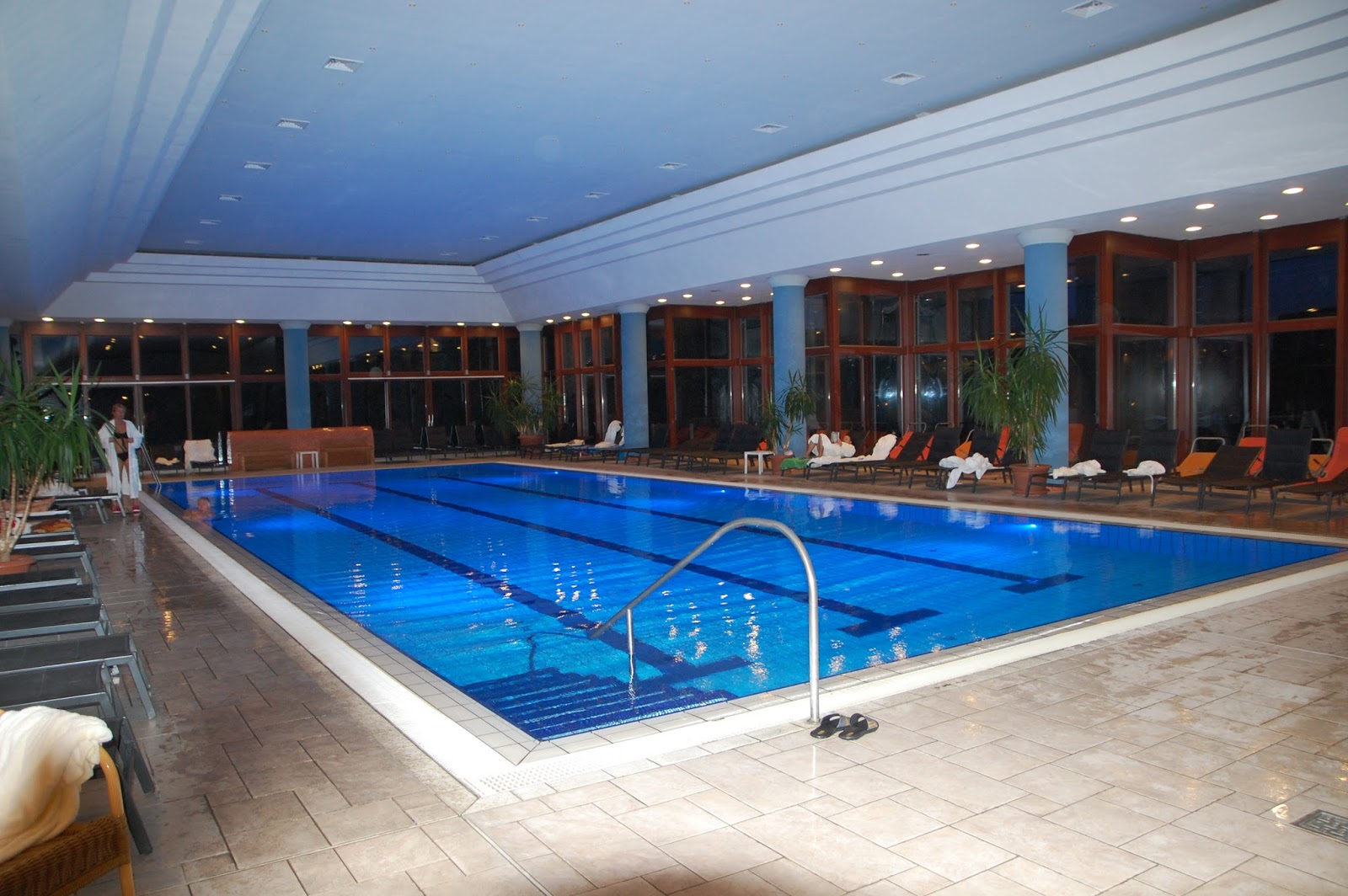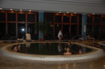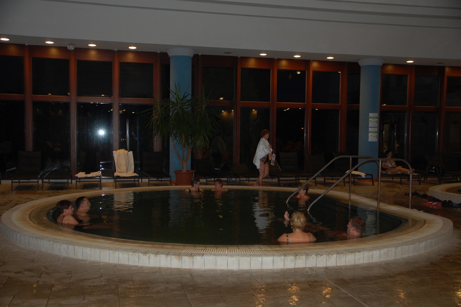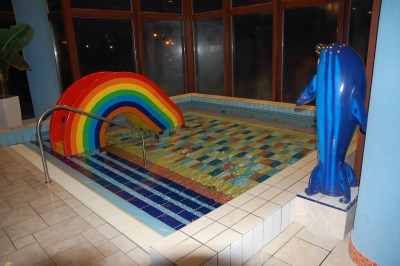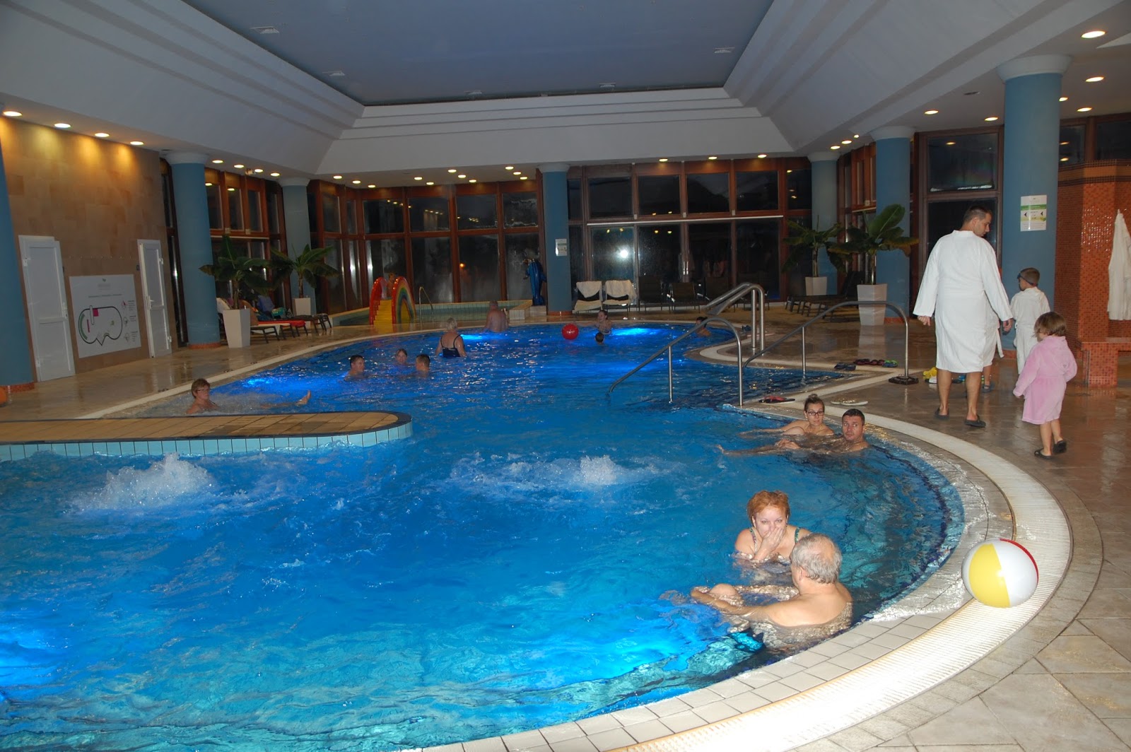 A wellness részleg hatalmas és minden igényt kielégítő. Van élménymedence, gyerekpancsoló kis csúszdával, gyógyrészleg, úszómedence, szaunák, sőt ki lehet úszni a kültéri medencébe is.
