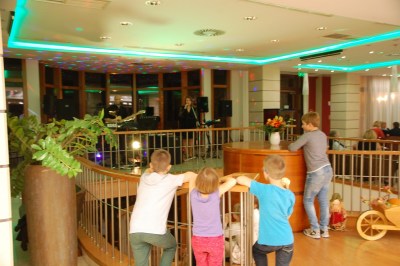 A finom, bőséges vacsora után belehallgattunk az élőzenés előadásba, majd felfedeztük a gyerekbirodalmat. Nem sokat tudtunk itt időzni, hiszen későre járt már.